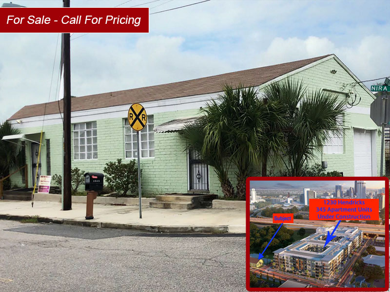 Northwest Corner of Nira & Naldo Street. The subject property is situated immediately west of the now under construction 1230 Hendricks mixed-use apartment / retail development consisting of 345 apartment units & 5,000 SF of retail space.